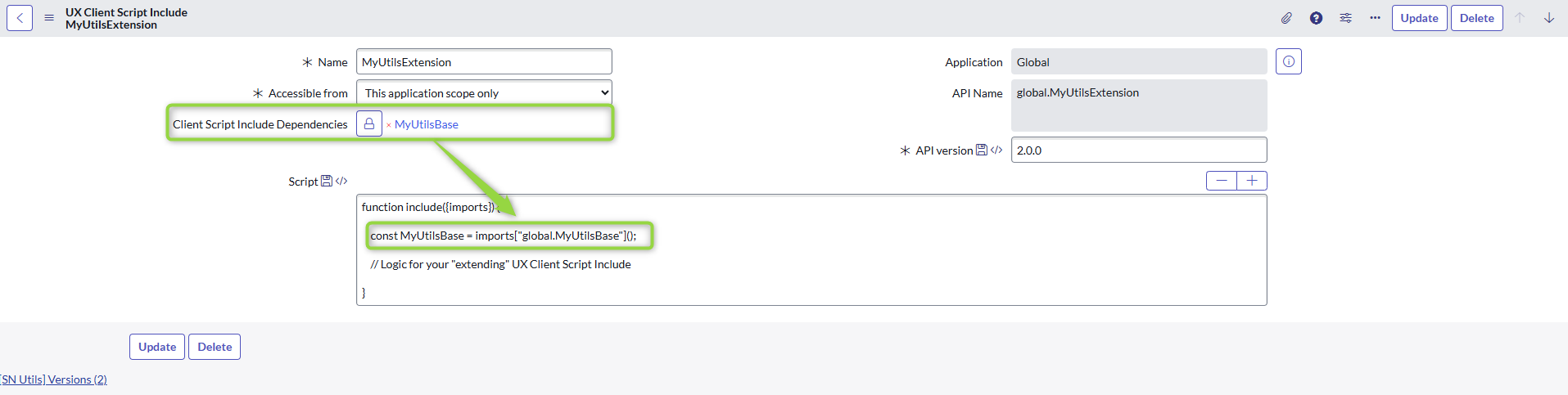 So if I want to create another UX Client Script Include that “extends” (contains) features from another one, you can do it like this 👇