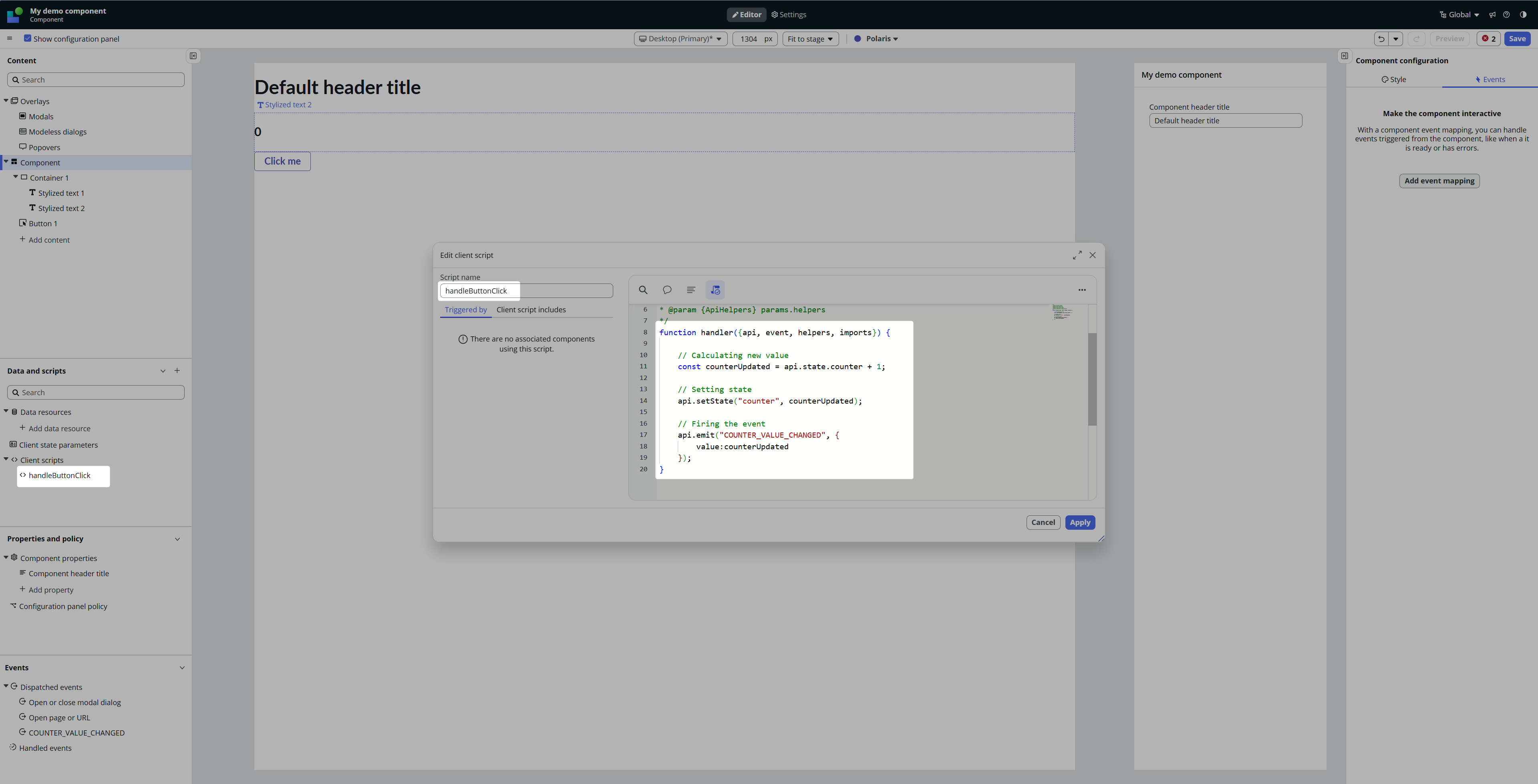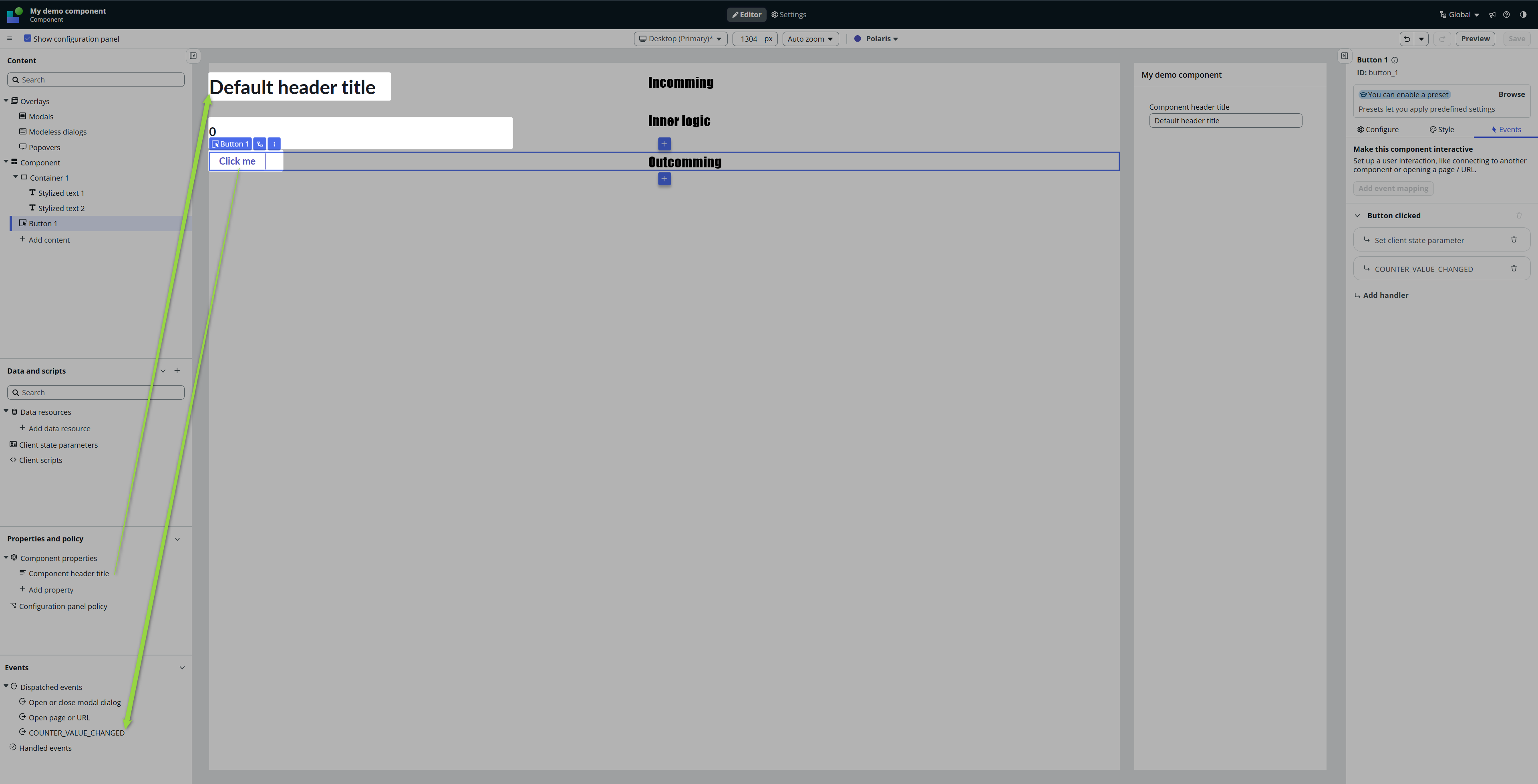 After that, click on your component and add the event handler COUNTER_VALUE_CHANGED.