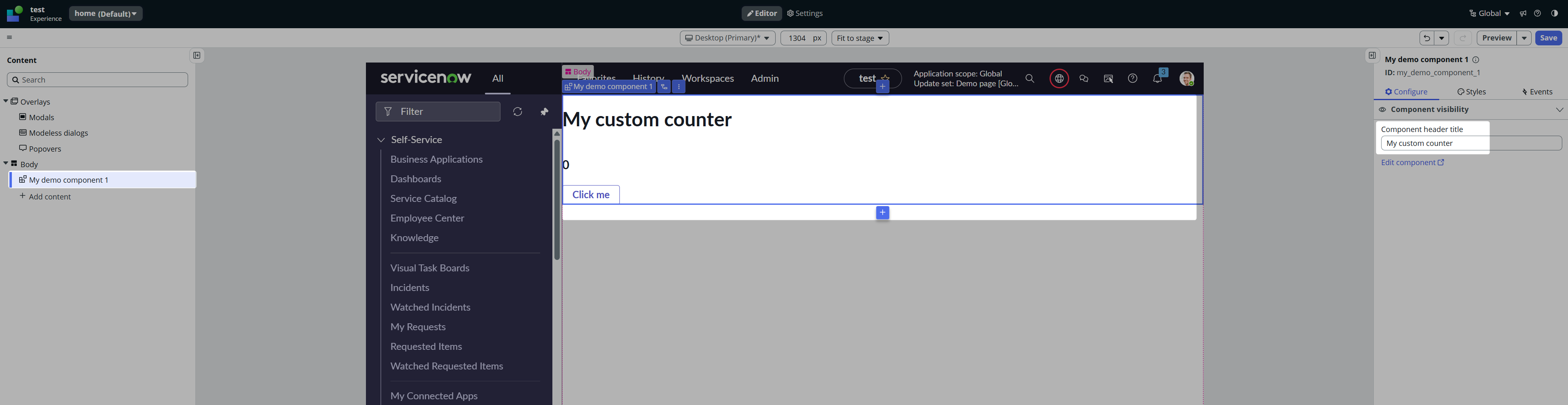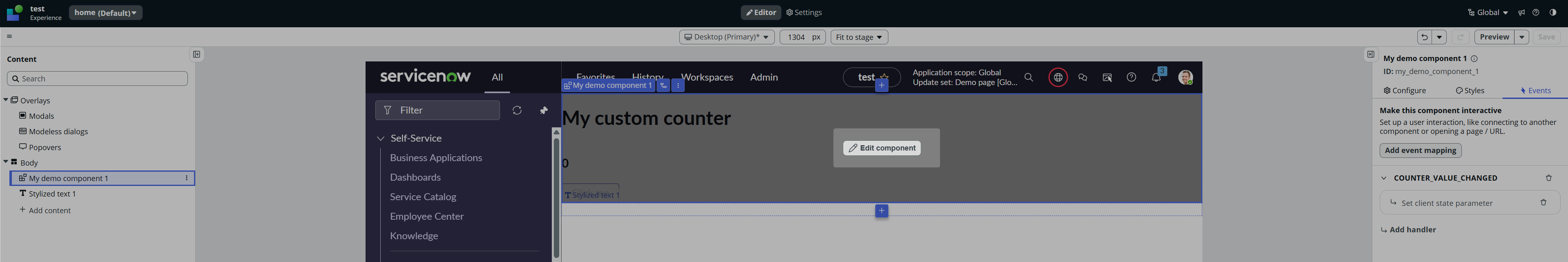 Go back to your Custom component. You can either start from the very beginning through the UI Builder, or you can just click on it on your Page and click on Edit component.