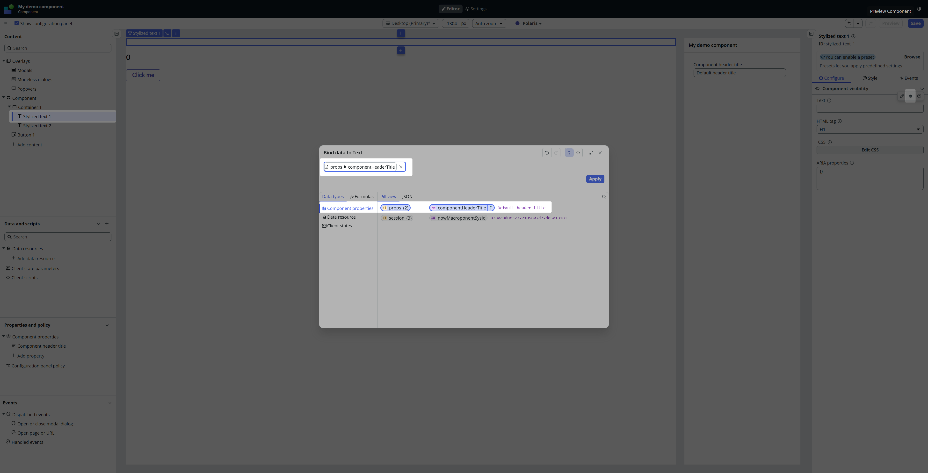 The interesting part starts here. First, we want an input property for our header. Go to Component properties and create a Component Property.
