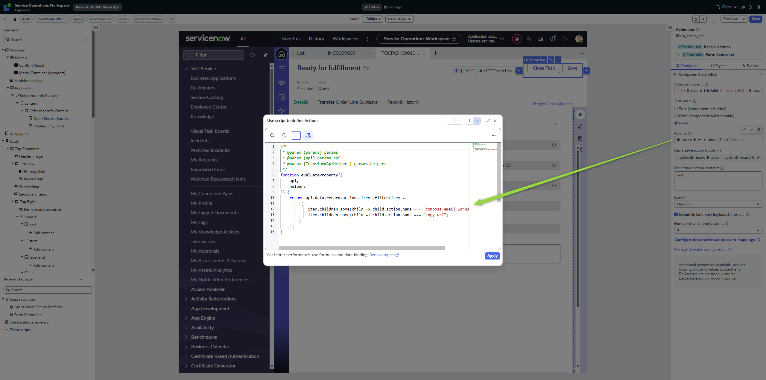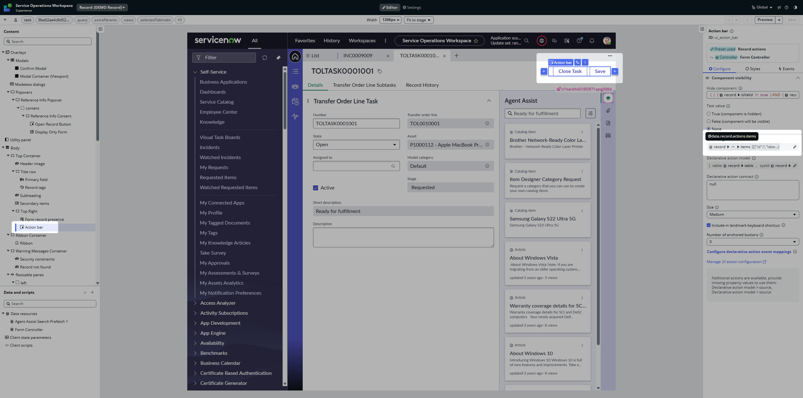 We have quite a number of declarative actions on a workspace of our project. Some of them are very often used, some of them are global and agents use them only from time to time. Still, those actions take place in the Action bar. I was wondering whether we can something with that. And yes, we can 👇