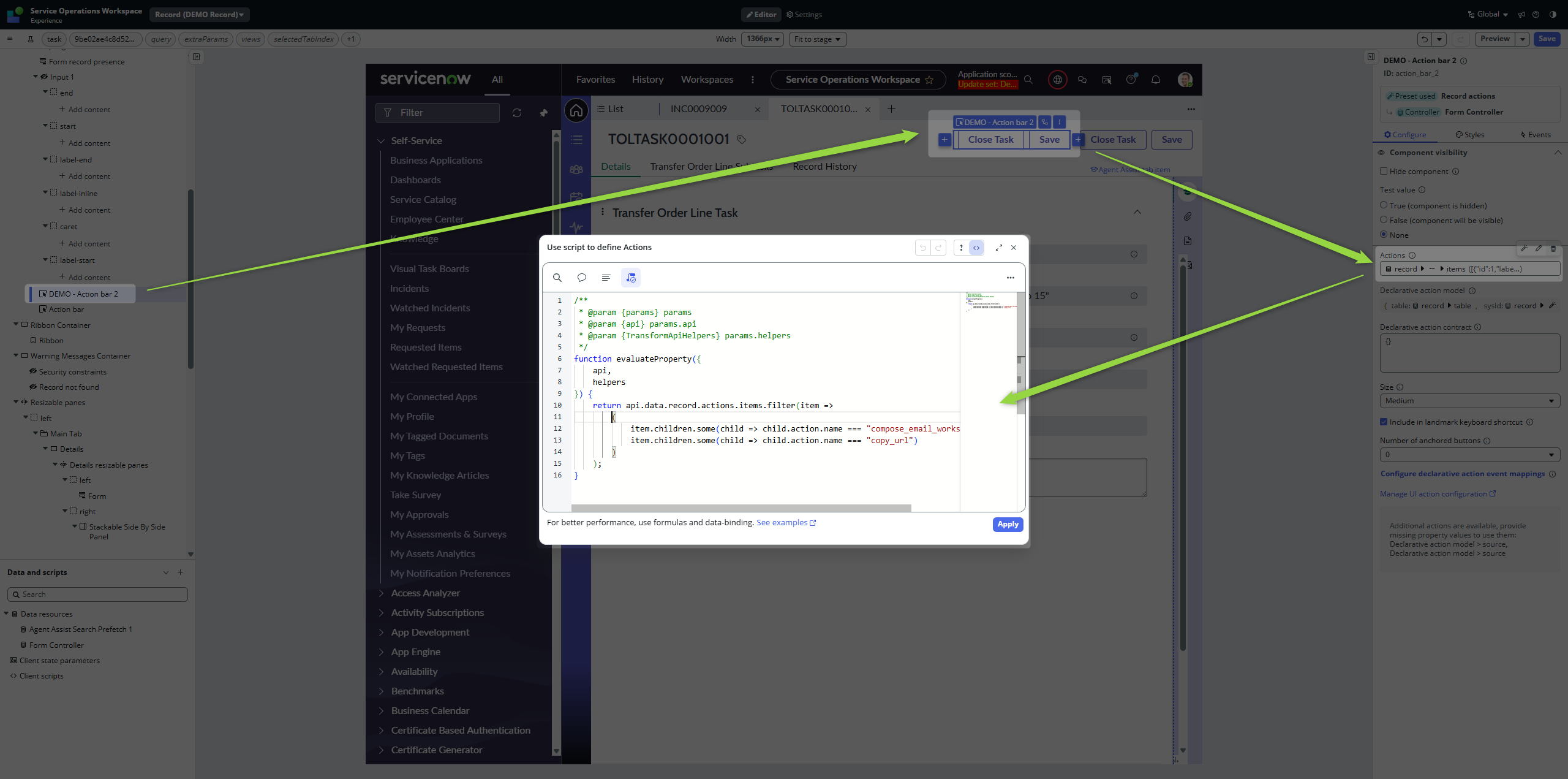 Keeping in mind that we have separated the Action Bar component with our filtered buttons, we can move it anywhere on the page. The point is that they are still Declarative actions / UI actions, just placed in different places.