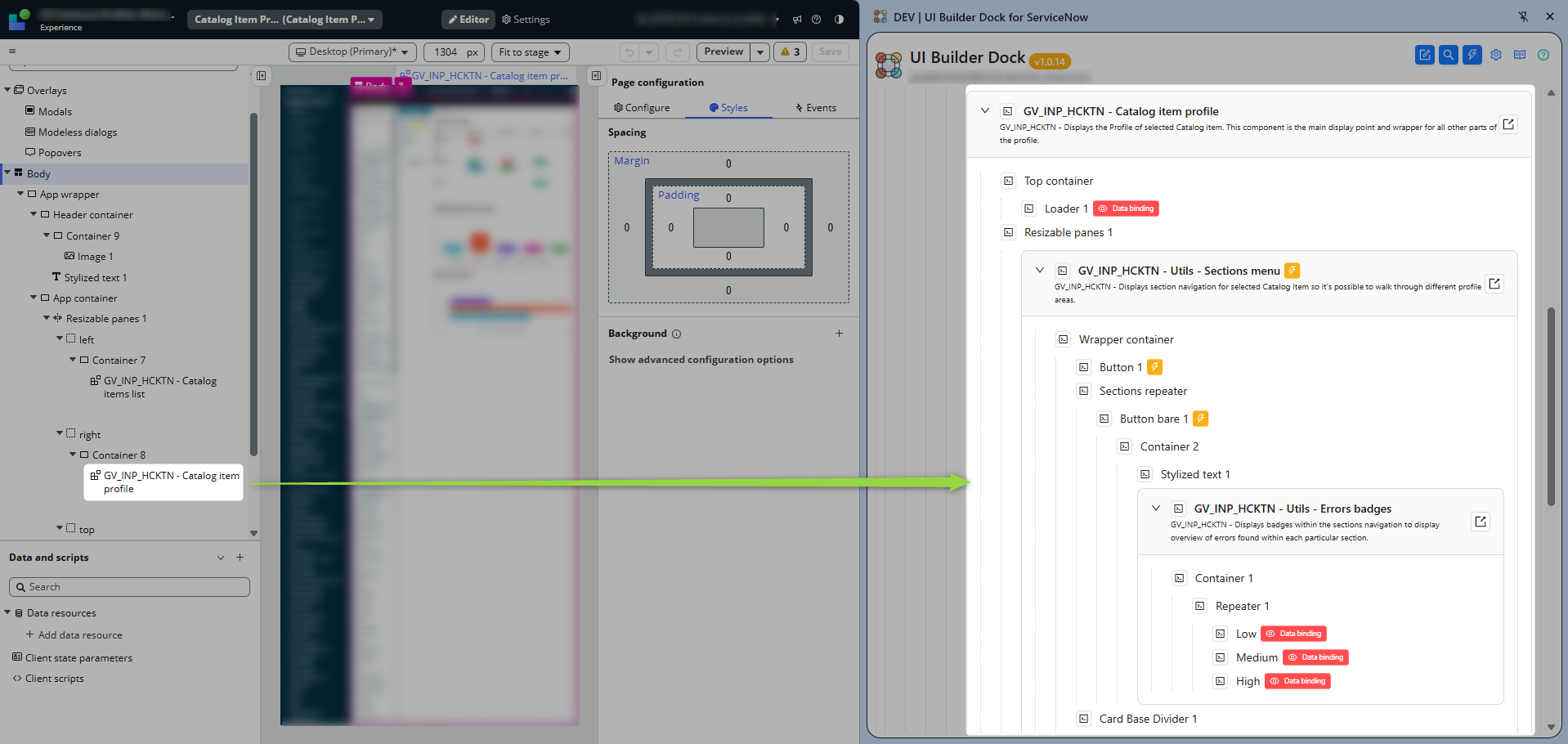 There was a hackathon happening in my company last month and our team was working on a profiling catalog item (searching for errors, discrepancies, etc.). The whole app was a pure data-driven beast where all logic and work happened on the backend and the UI Builder acted only as a dumb data printer.